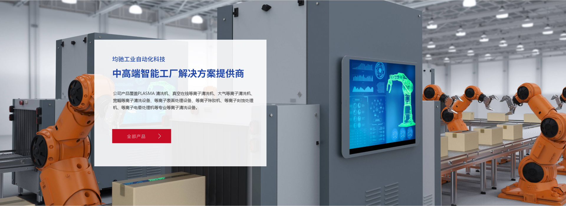 均馳工業自動化科技(蘇州)有限公司是行業領先的非標自動化設備,中高端智能工廠解決方案提供商,自公司成立以來,我們一直專注智能智造,以技術創新為中心,致力于3C電子、半導體、新能源動力電池、光伏、通信、汽車、紡織、印刷、生物醫療等行業提供服務。公司產品覆蓋PLASMA 清洗機、真空在線等離子清洗機、大氣等離子清洗機、寬幅等離子清洗設備、等離子表面處理設備、等離子除膠機、等離子刻蝕處理機、等離子電暈處理機等專業等離子清洗設備;均馳工業等離子處理設備對各類材料表面處理、活化、改性、蝕刻、除膠工藝中具有清洗材料表面有機物、提高材料表面親水性,改善材料表面附著力等優勢。